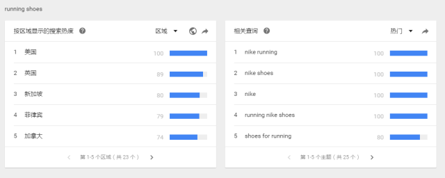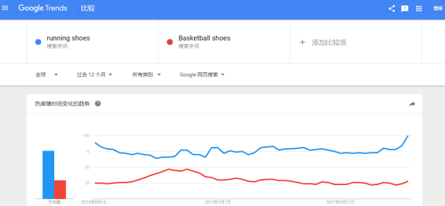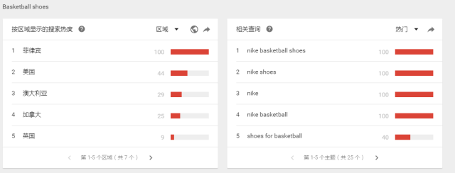 以running shoes 和basketball shoes 為例running shoes 的熱度在谷歌上遠(yuǎn)超basketball 這時(shí)候我們可以把running shoes 為我們主要去搜索的關(guān)鍵詞。