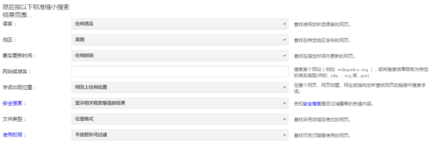 網(wǎng)站或域名:在這里輸入網(wǎng)址或域名,比如說輸入www.google.com,那么最后出現(xiàn)的所有搜索結(jié)果都是基于谷歌網(wǎng)站的,這樣可以讓我們的搜索結(jié)果更加精確。