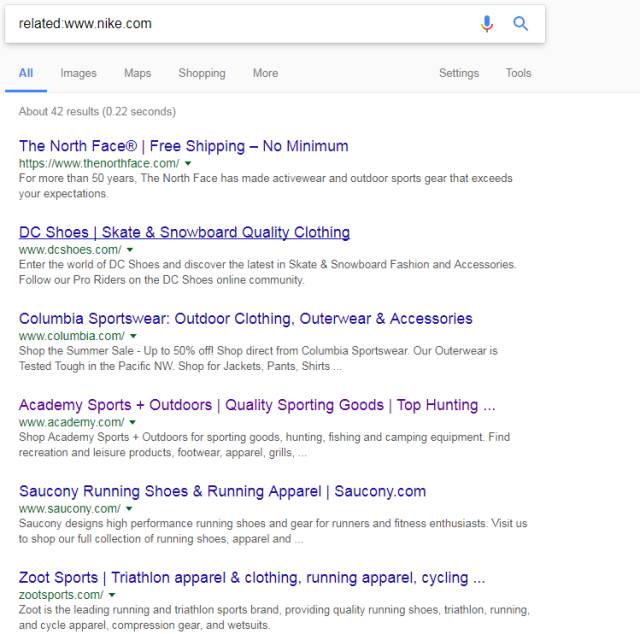 找到目標(biāo)的的網(wǎng)站后可以使用related: 尋找類似網(wǎng)站。