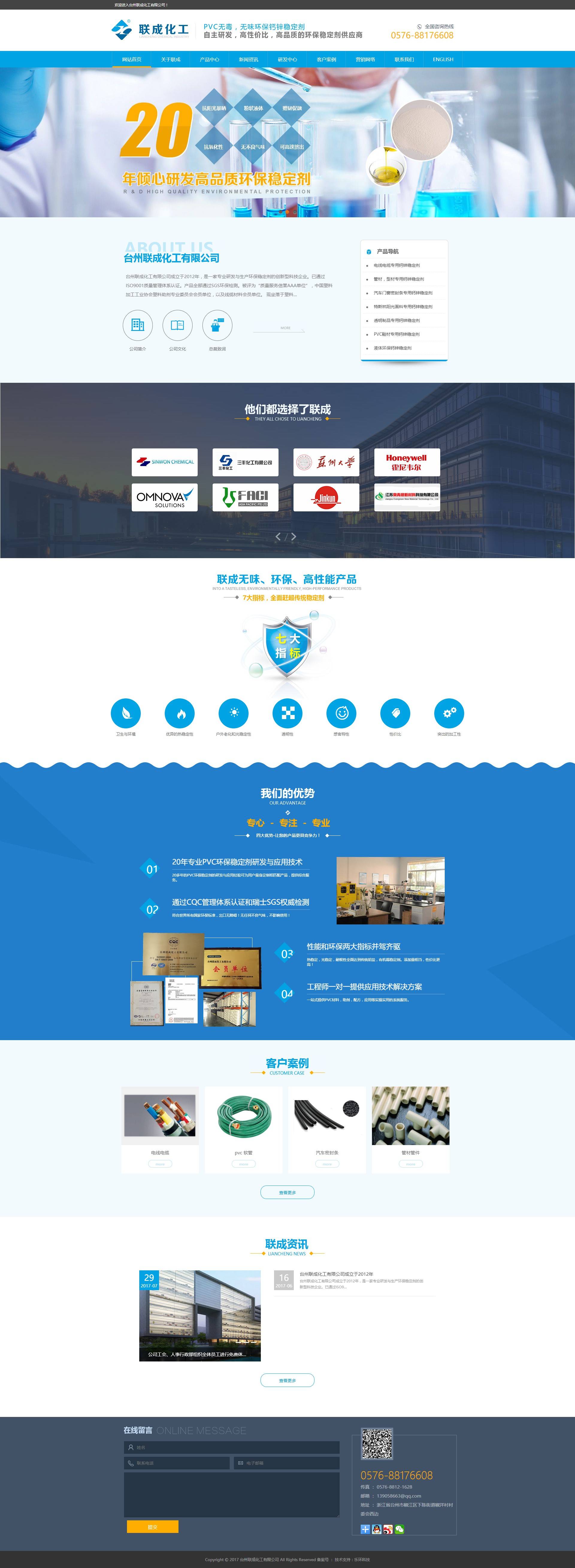 臺(tái)州聯(lián)成化工有限公司成立于2012年,是一家專業(yè)研發(fā)與生產(chǎn)環(huán)保穩(wěn)定劑的創(chuàng)新型科技企業(yè)。已通過(guò)ISO9001質(zhì)量管理體系認(rèn)證。產(chǎn)品全部通過(guò)SGS環(huán)保檢測(cè)。被評(píng)為“質(zhì)量服務(wù)信譽(yù)AAA單位”,中國(guó)塑料加工工業(yè)協(xié)會(huì)塑料助劑專業(yè)委員會(huì)會(huì)員單位,以及線纜材料會(huì)員單位。 現(xiàn)坐落于塑料之鄉(xiāng)---臺(tái)州市椒江區(qū)下陳街道椒洋工業(yè)園。